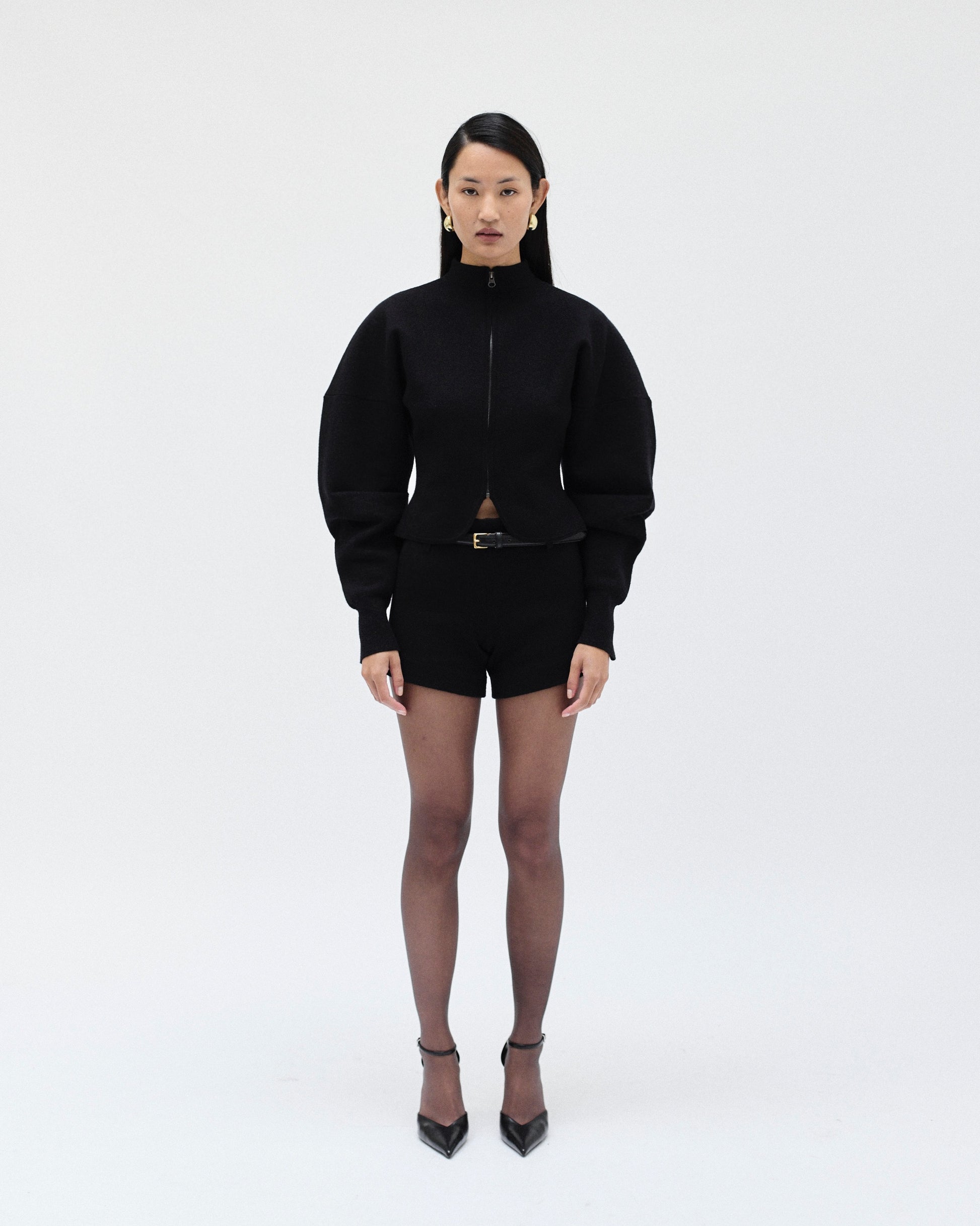 The sculpted and tailored Nova Jacket is knitted from a soft viscose blend. Designed with a double-layered technique, it creates volume and structure in the sleeves, which taper into fitted cuffs. The bodice offers a close, embracing fit with a zipper closure and high neckline. Nova means "new", inspired by phases of the moon, highlighting the beauty of new beginnings. For a complete look, The Nova Jacket is paired with The Nova Knit Shorts.